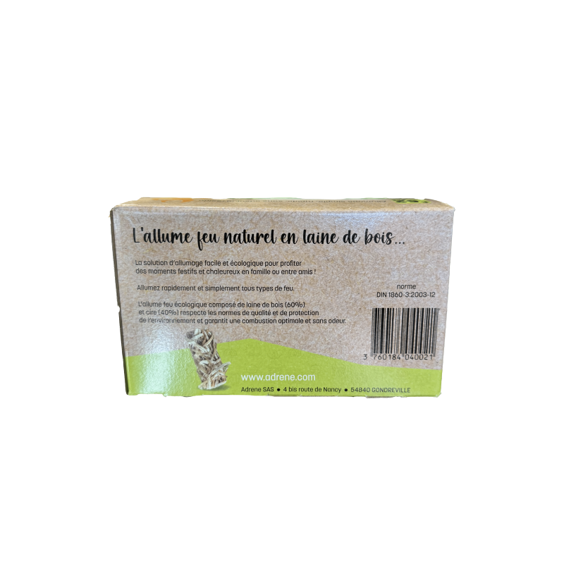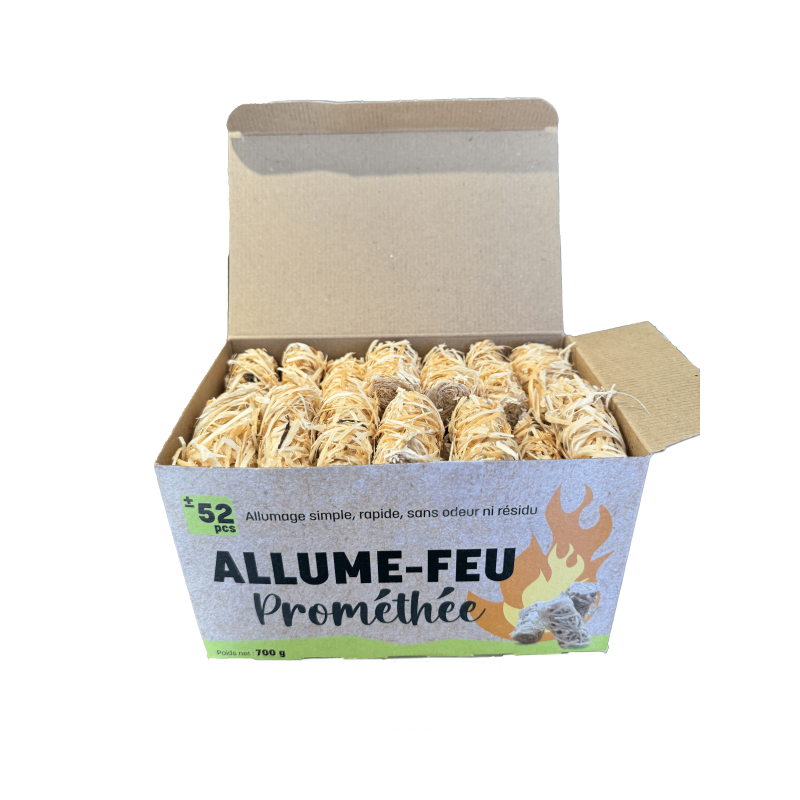 L'allume-feu Prométhée est un produit 100% naturel, à base de laine de bois, résine naturelle et cire pure alimentaire. Sans colorant ni parfum.